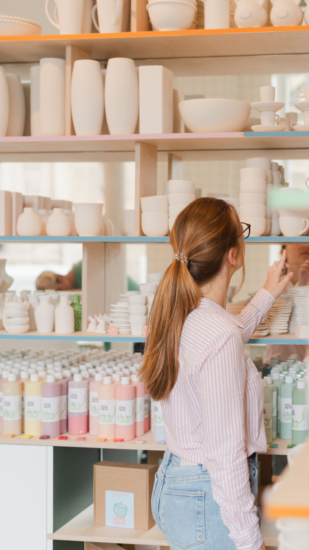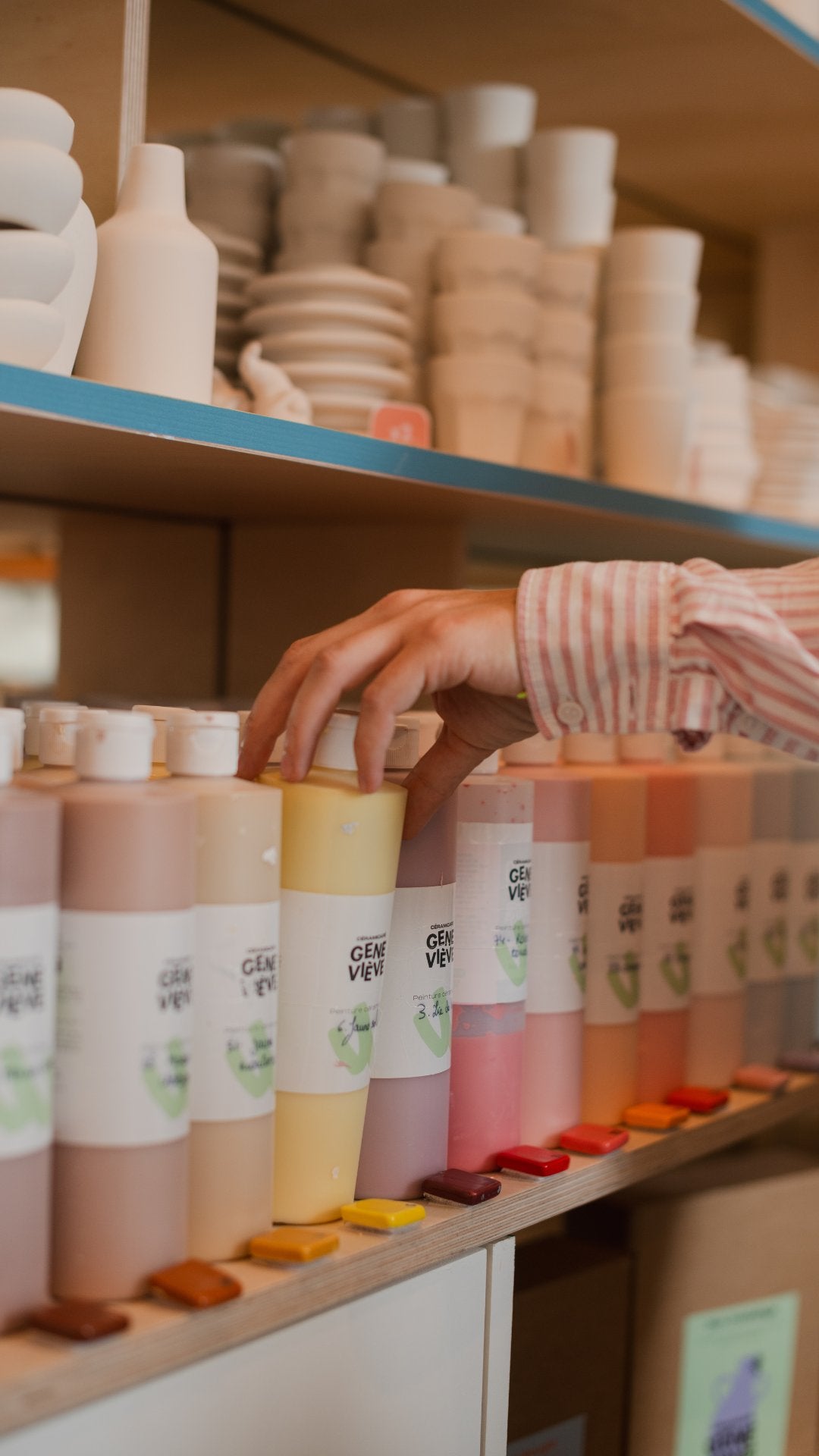 Since 2018, our hybrid locations are both cafés and ceramic workshops with all the necessary equipment available. We introduce you to ceramic painting and you can also learn during supervised workshops, ceramic decoration, modeling, throwing or Kintsugi.