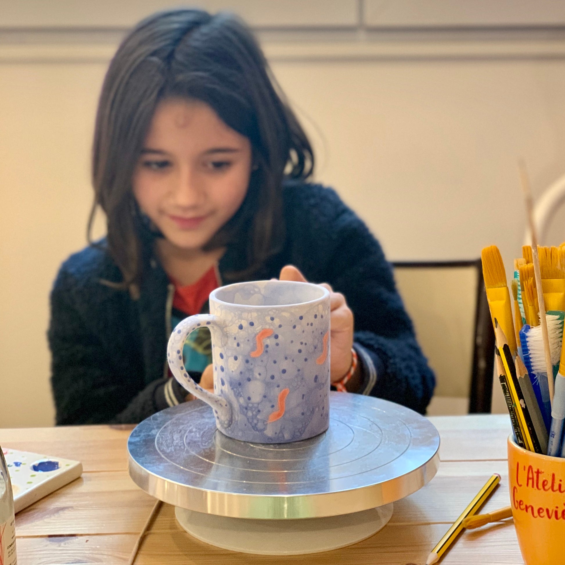 Children must be accompanied by an adult. Ceramic painting can be practiced from a very young age, just like painting at home. Recommended from 7 years old.