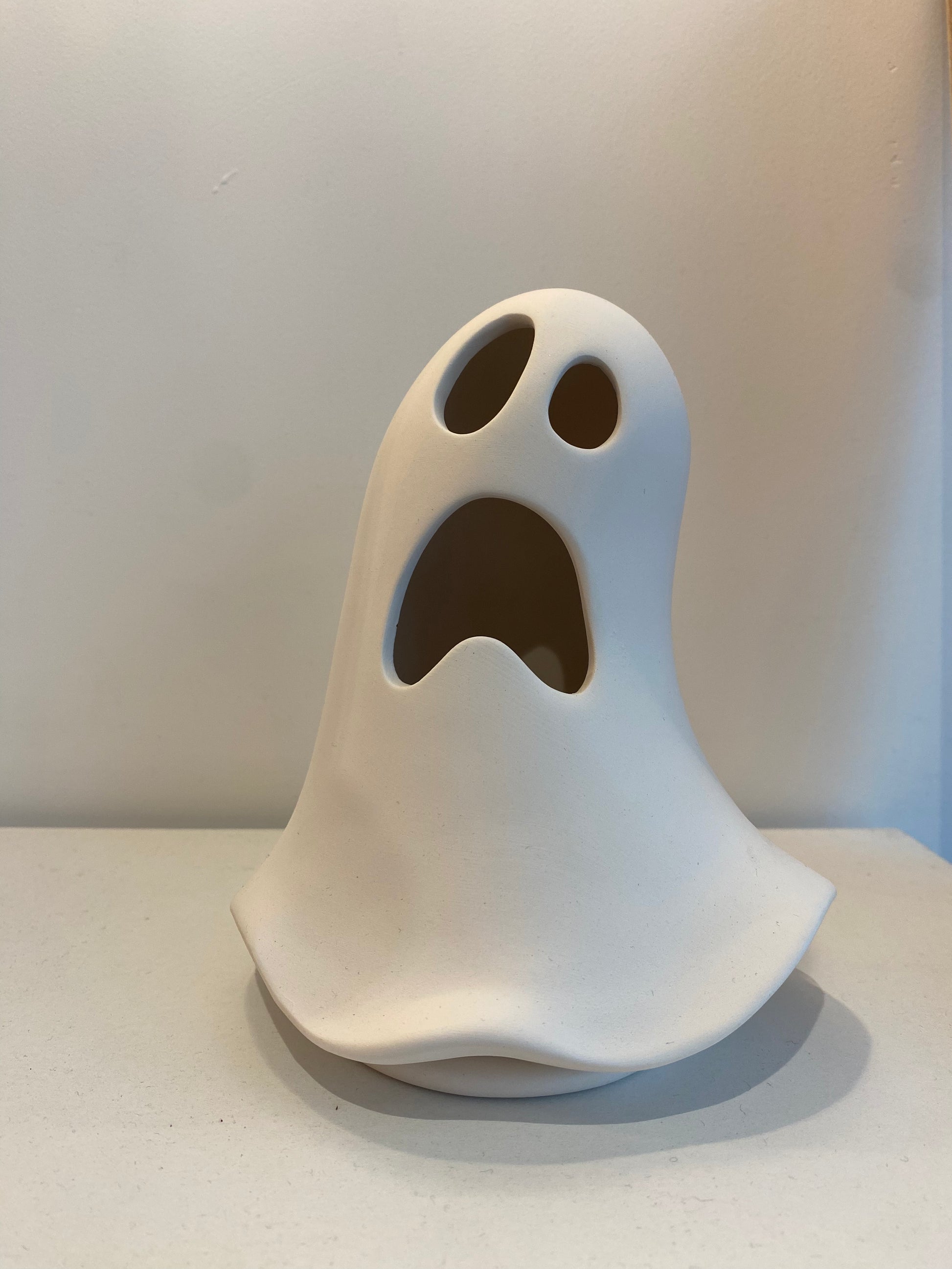 Immerse yourself in the magical atmosphere of Halloween with this 15 cm high earthenware ghost tealight holder, ready to be transformed into a bewitching work of art. 🎃