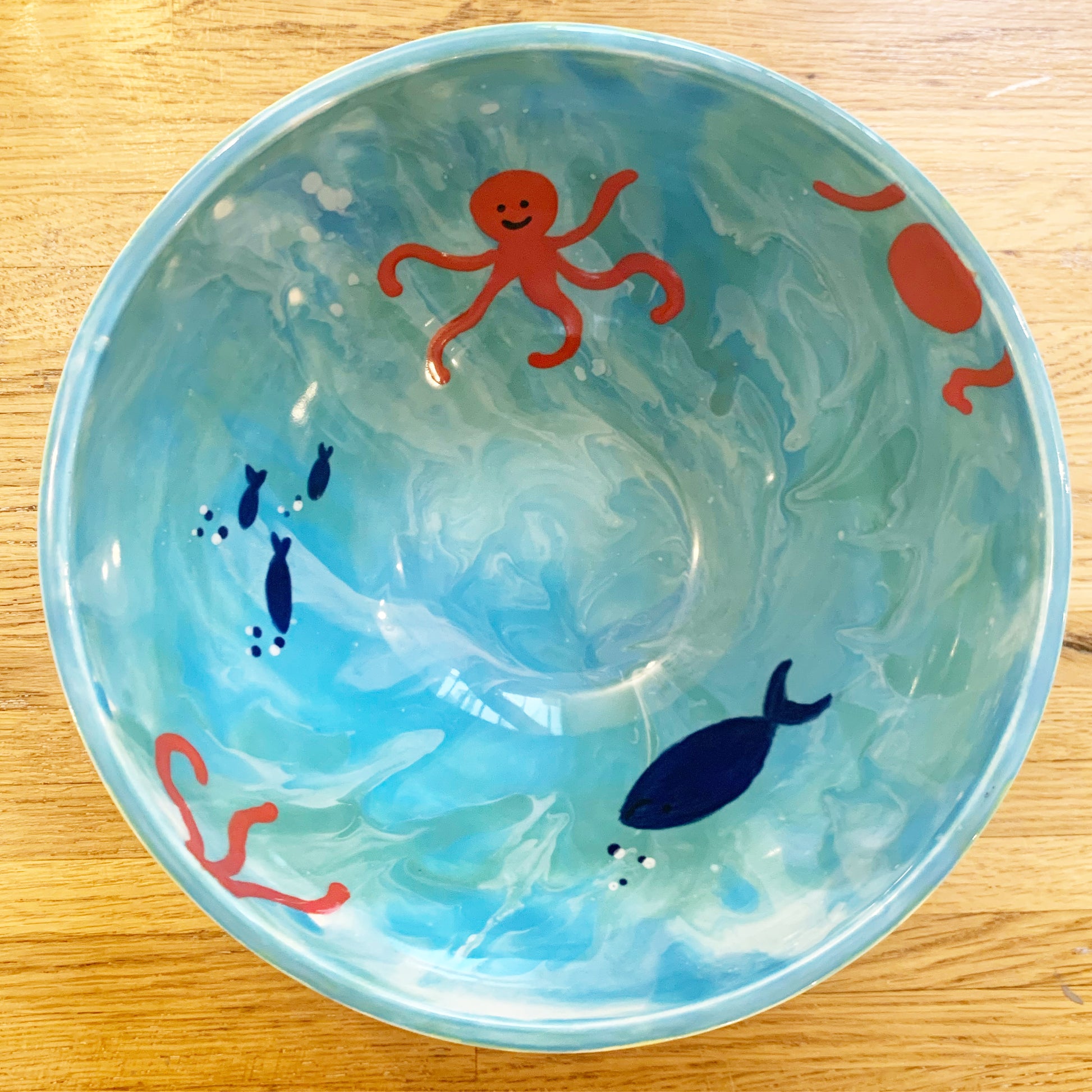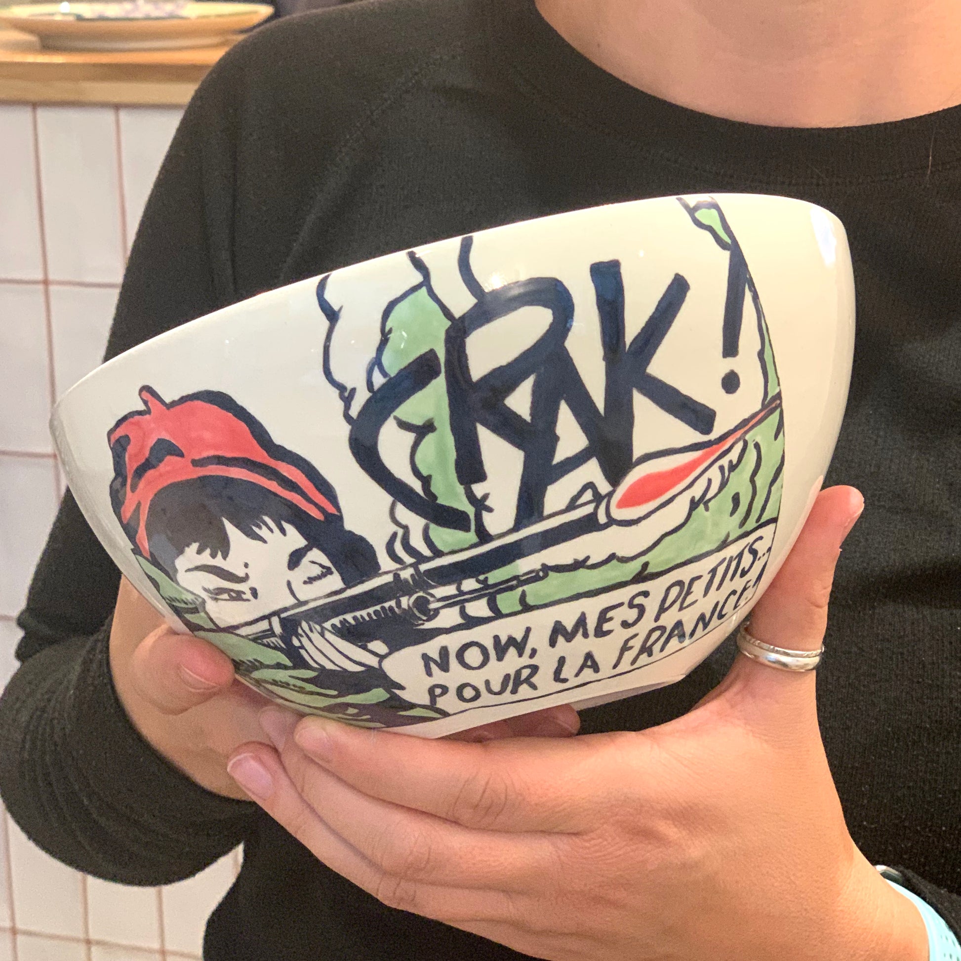Once your piece is decorated, you can drop it off at the Céramicafés or send it back by post. Our team Geneviève from Céramicafé will then take care of the enameling (varnish) and the firing at 1000 degrees, at no additional cost. The piece can be collected a week later, in bright and shiny colors!