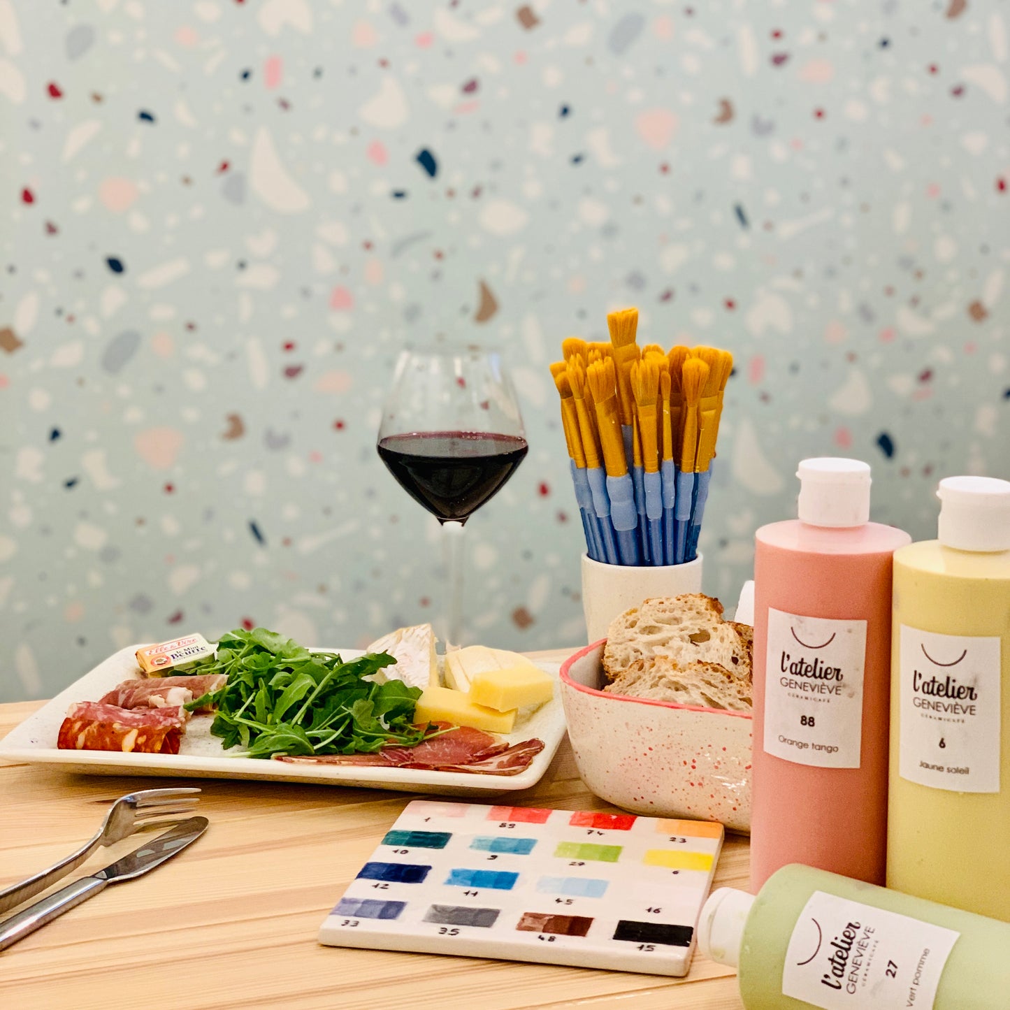 Join us for an aperitif and creative evening at Céramicafé Geneviève! 🍷