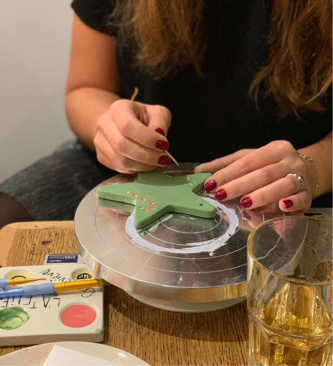 Once your piece is decorated, you can drop it off at the Céramicafés or send it back by post. Our team Geneviève from Céramicafé will then take care of the enameling (varnish) and the firing at 1000 degrees, at no additional cost. The piece can be collected a week later, in bright and shiny colors!
