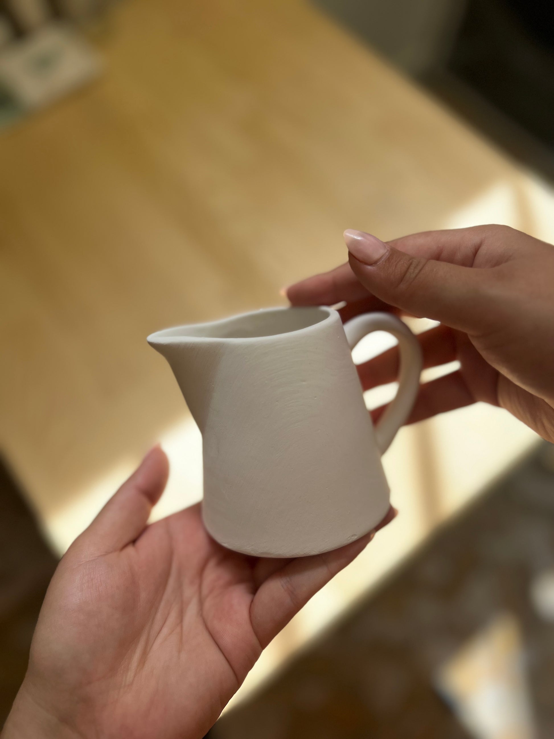 Let your imagination run wild with this earthenware milk jug, 9 cm high and 300 cm in capacity, ready to be decorated.