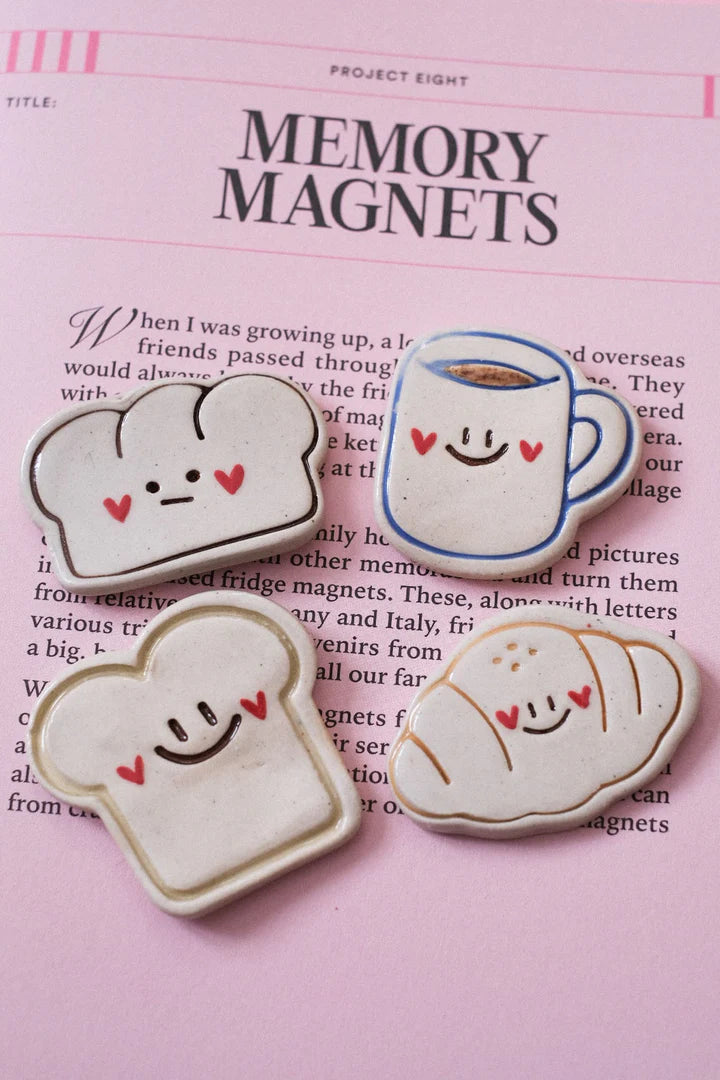 - 🧲 Lot de 4 magnets : croissant, tartine, brioche et mug