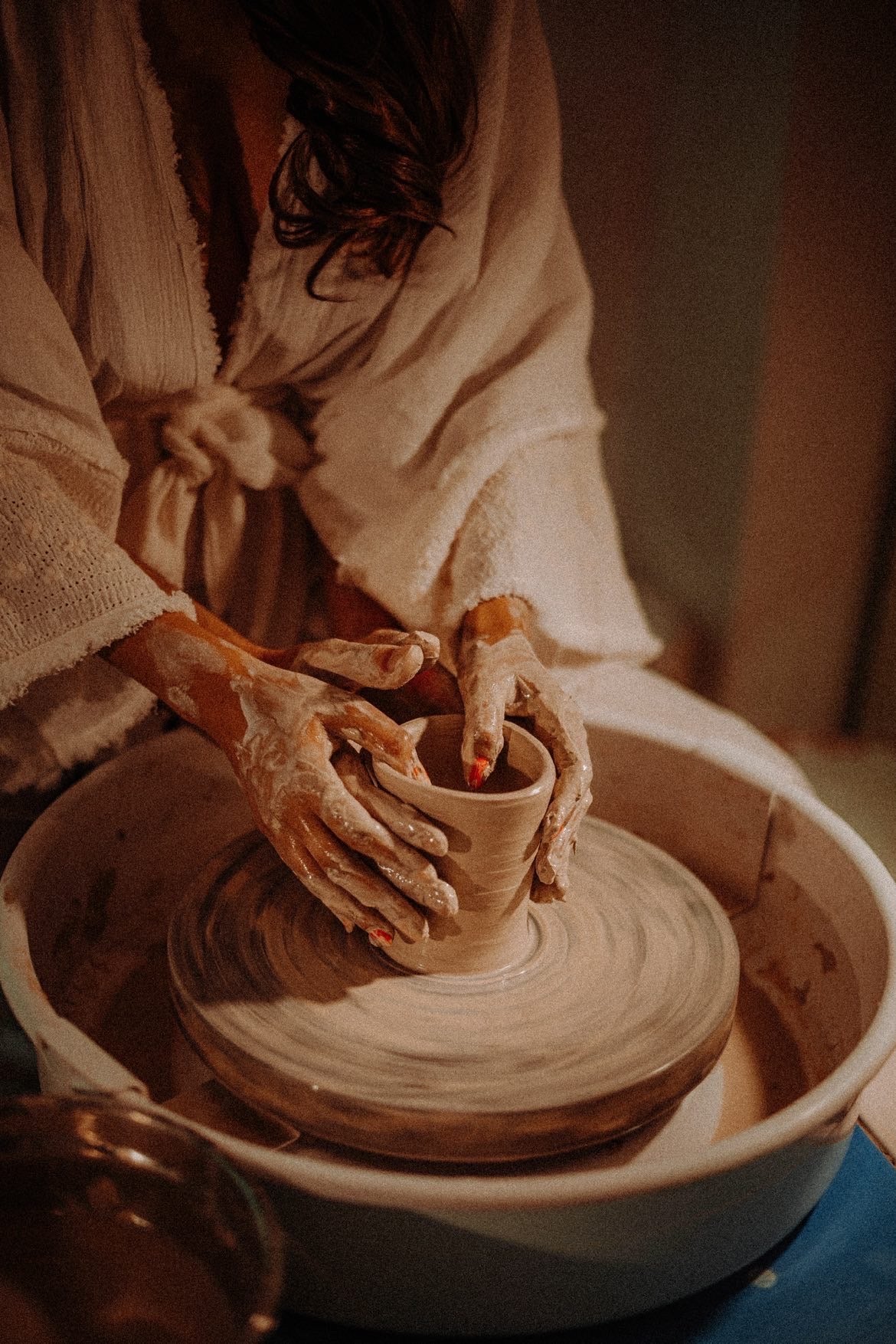 Vous découvrirez ainsi la céramique et le travail de la terre. Vous apprendrez les gestes de base et façonnerez vos premières pièces en faïence. La session se déroule avec une démonstration de la céramiste, la pratique avec un tour par personne, et inclut le nettoyage des tours et matériel par chacun, partie intégrante de l'activité :).